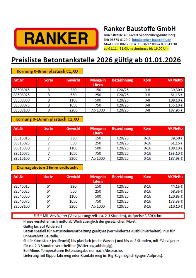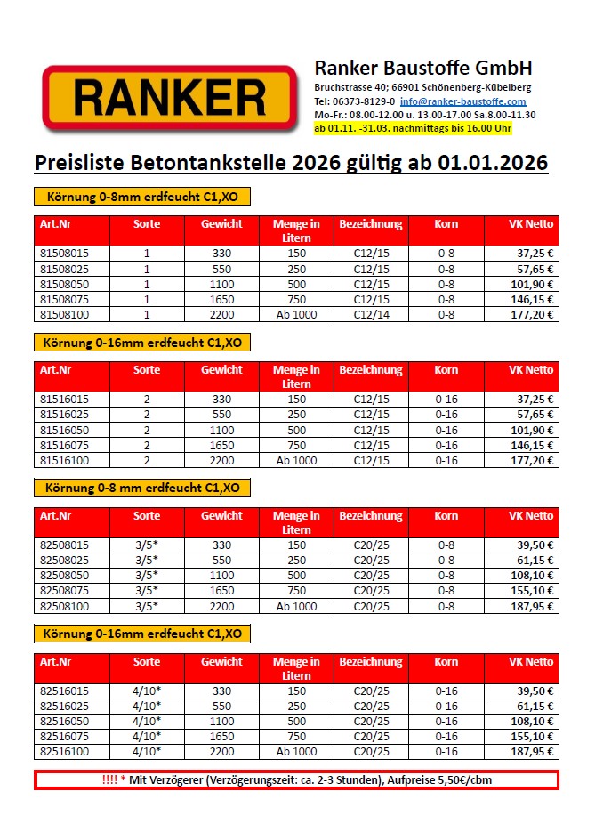 6reisliste Betontankstelle 2026 gültig ab 01.01.2026